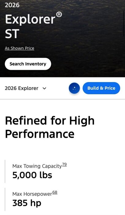 I picked this nice nugget up from my ST Facebook page and figured it was appropriate for this page. The 2026 Explorer ST has been detuned to 385hp. This was unbeknownst to me at the time of our purchase. I could not find any reference to this prior to purchase and many web sites are still referencing 400hp. The 2025 model is still referencing 400hp on the Ford website. I find it problematic unless they started this spec after ours was produced.