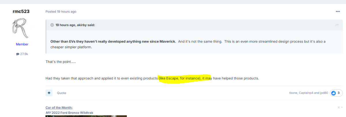 Agree regarding BS and hybrid. Isn't the ROW hybrid for Ranger a PHEV - not sure they'll go that route here....I think they'll go a PowerBoost (regular hybrid) route instead. Farley's comments also line up with those surveys they put out to Bronco owners a few months back that mentioned a few different powertrains (including hybrids).
