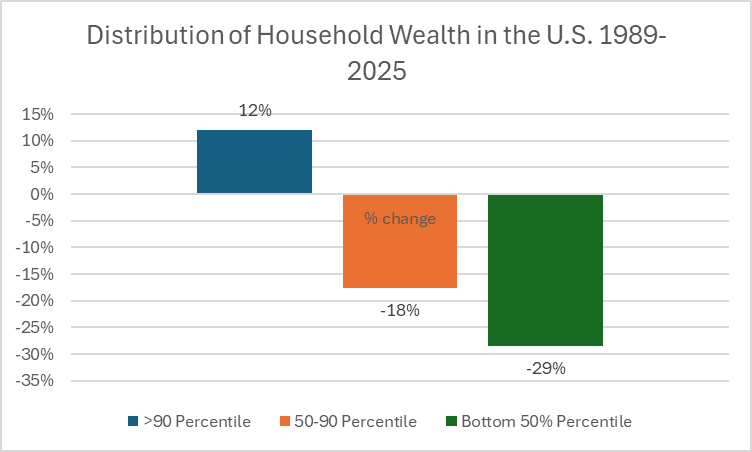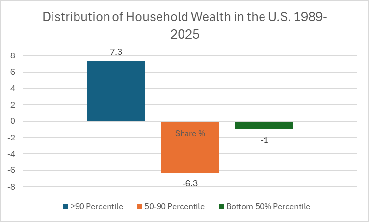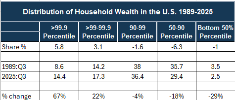 Collectively, the wealthiest 1% held about $55 trillion in assets in the third quarter of 2025 — roughly equal to the wealth held by the bottom 90% of Americans combined.