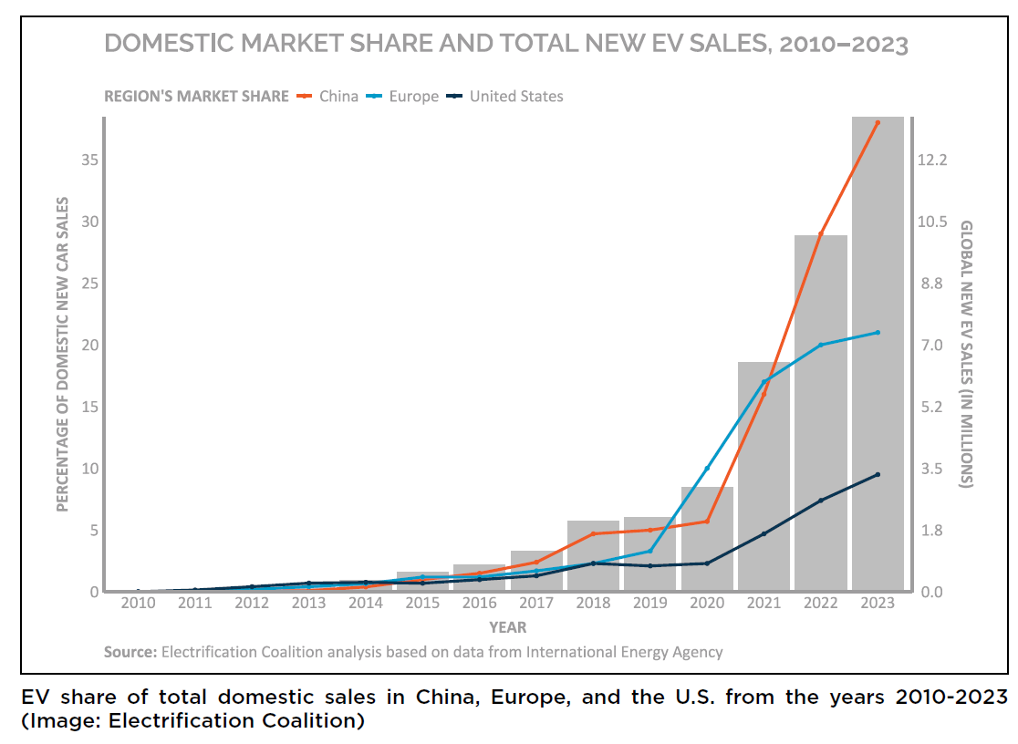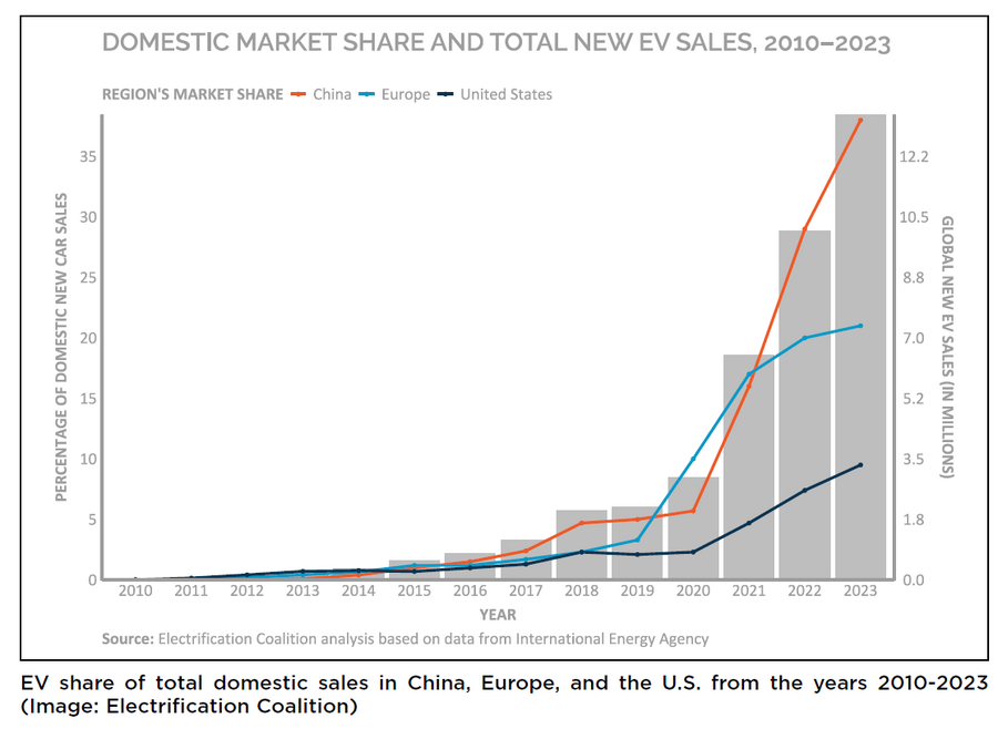 Didn't think about all that before reading your post. Biker16, would you say the influence of legacy automakers and oil companies is keepin' EV from growing faster in Europe too? Look at how EV market share has been doin' in Planet Europe, Planet America, and Planet Red China from 2010 to 2023: -