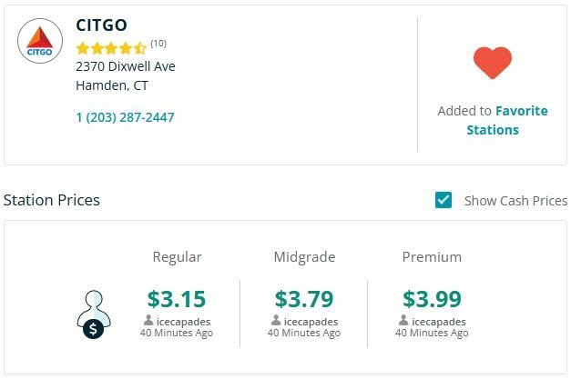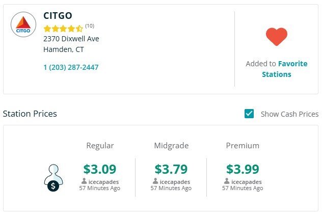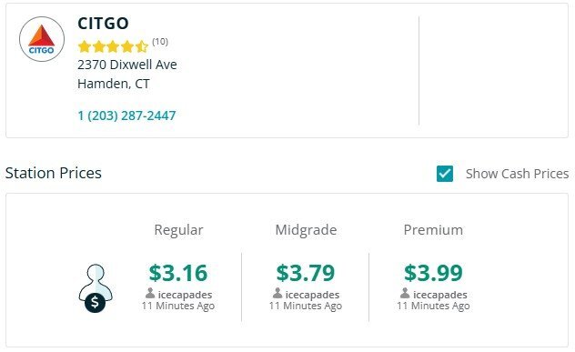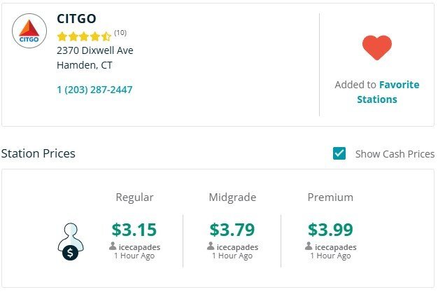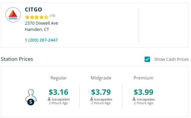 ice-capades Posted September 20 Share Posted September 20 (edited) This morning's updated gas prices in Hamden, CT (Greater New Haven) $3.13 Regular (Cash) @ Gulf $3.16 Regular (Cash) @ Citgo (Decreased $0.03 from $3.19) $3.99 Premium (Cash) @ Citgo (Decreased $0.20 from $4.19) Edited September 20 by ice-capades Additional Content Quote Link to comment Share on other sites More sharing options...