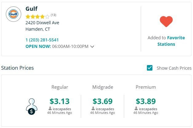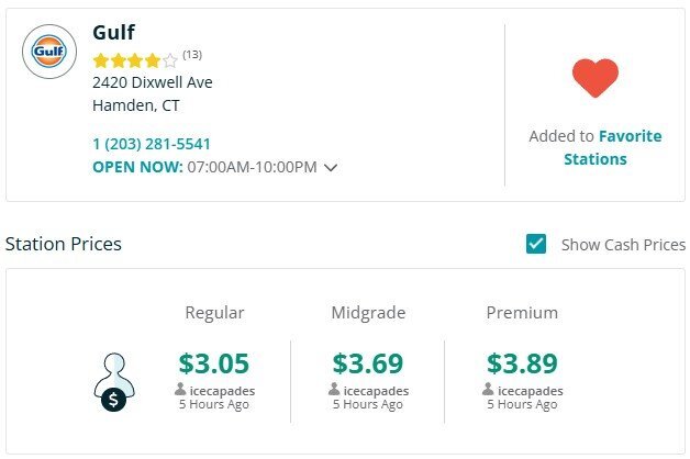 ice-capades Posted September 5 Share Posted September 5 (edited) This morning's updated gas prices in Hamden, CT (Greater New Haven) $3.13 Regular (Cash) @ Gulf $3.19 Regular (Cash) @ Citgo The Citgo station raised its price again putting it $0.06 higher than the Gulf station on the same block. Usually, the Citgo station is $0.10 higher than the Gulf station for Regular grade (Cash). Edited September 5 by ice-capades Additional Content Quote Link to comment Share on other sites More sharing options...