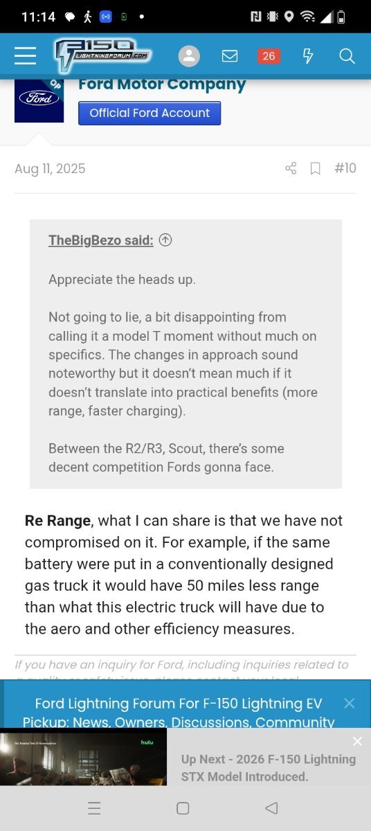 jpd80 Posted September 26 Share Posted September 26 (edited) On 9/26/2025 at 4:56 AM, DeluxeStang said: Valid points friend. So as for towing, I believe there was some interview with an engineer who said towing wasn't a priority with this truck, my guess is it'll do about 2,000 lbs like my maverick hybrid. Which isn't stellar, but for towing smaller items, you should be fine. As for the full comment from Ford, I'll link it below. So I was wrong, I said it was a 50 mile range improvement due to aero and Ford could make other gains due to other efficiency improvements. It's 50 miles of range as a result of the aero and efficiency combined, so I apologize. They say Ford didn't compromise on it. To me, that means maybe a battery pack that's much smaller than what Ford currently offers, but with a range comparable to their mach-e and lightning. I think it’s a case of separating the actual objectives from marketing. Ford is selling the smaller battery as a way of keeping prices down for buyers and profits up for itself. They will offer a longer range battery for buyers but with the premium price to go with it. Think back, all of Ford’s perceived mis steps with electrified vehicles has been because in the past, it wrongly assumed something, there is no evidence that Ford’s thought processes have changed. They now push plan B with its smaller lighter batteries because it’s cheaper for them to make and are trying to sell near future buyers that this is all they need; all without understanding why sales potential for Lightning and T3 collapsed (Ford’s own greed did that). Edited September 26 by jpd80 1 Quote Link to comment Share on other sites More sharing options...