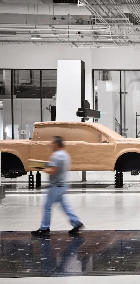 DeluxeStang Posted November 19, 2025 Share Posted November 19, 2025 4 hours ago, rmc523 said: This is actually the SUV in the right of the photo above, BUT, I wouldn't be surprised if they share the same front end..... Here's why I think this..... Notice in this photo, the clay cutter is behind the truck (blue), but in front of the SUV (red)? Looking at the front end view, you can see the single cutter on the right side (blue, which would be behind the truck in the other angle), and the single one on the left (red, in front of the SUV from the other angle). They also roughly align with the breaks in the windows on the right. Good eye! I think there's merit to what you're saying. So this is either the suv, or maybe Ford moved the models as they were taking different photos? But I find that hard to believe. Another possibility is maybe the truck and SUV share some design elements like bumpers, hoods, fenders and so on to save on costs. So this could be how the truck and SUV both look for all we know. I still believe that original truck is just an f-150, it looks like a raptor before the details are sculpted in and refined, like how a clay model first looks when it comes out of the milling machine. That being said, this was another image shared and does appear to be a new design. Who knows if it's a next gen maverick, CE1, or even t3 with the design looking a bit smaller because it's further away. But it appears to have a shorter hood, decent sized cab, and ok sized bed. If this is it, I don't know what Farley is smoking by referring to this think as "A new silhouette instead of a traditional looking truck" because even with a slightly shorter hood, it still very much so looks like a conventional truck. Quote Link to comment Share on other sites More sharing options...