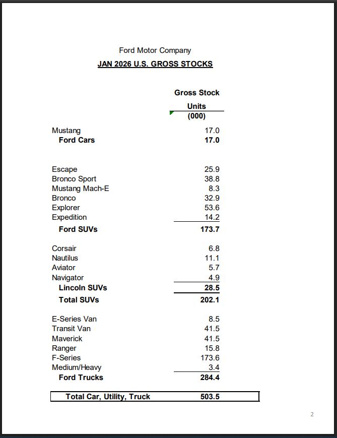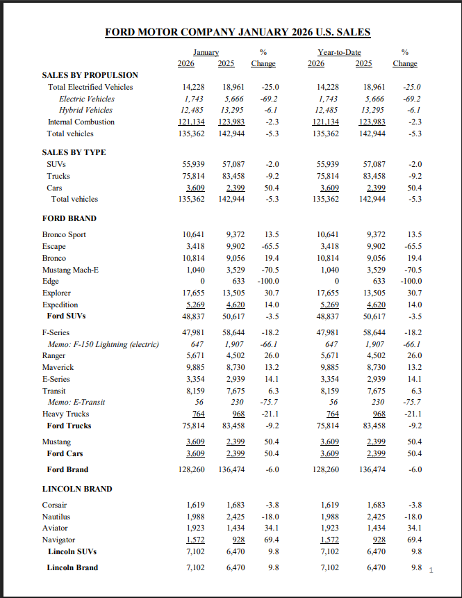 rmc523 Posted February 4 Share Posted February 4 https://s205.q4cdn.com/882619693/files/doc_news/2026/Feb/04/Ford-U-S-January-2026-Sales-Release.pdf Quote Link to comment Share on other sites More sharing options...
